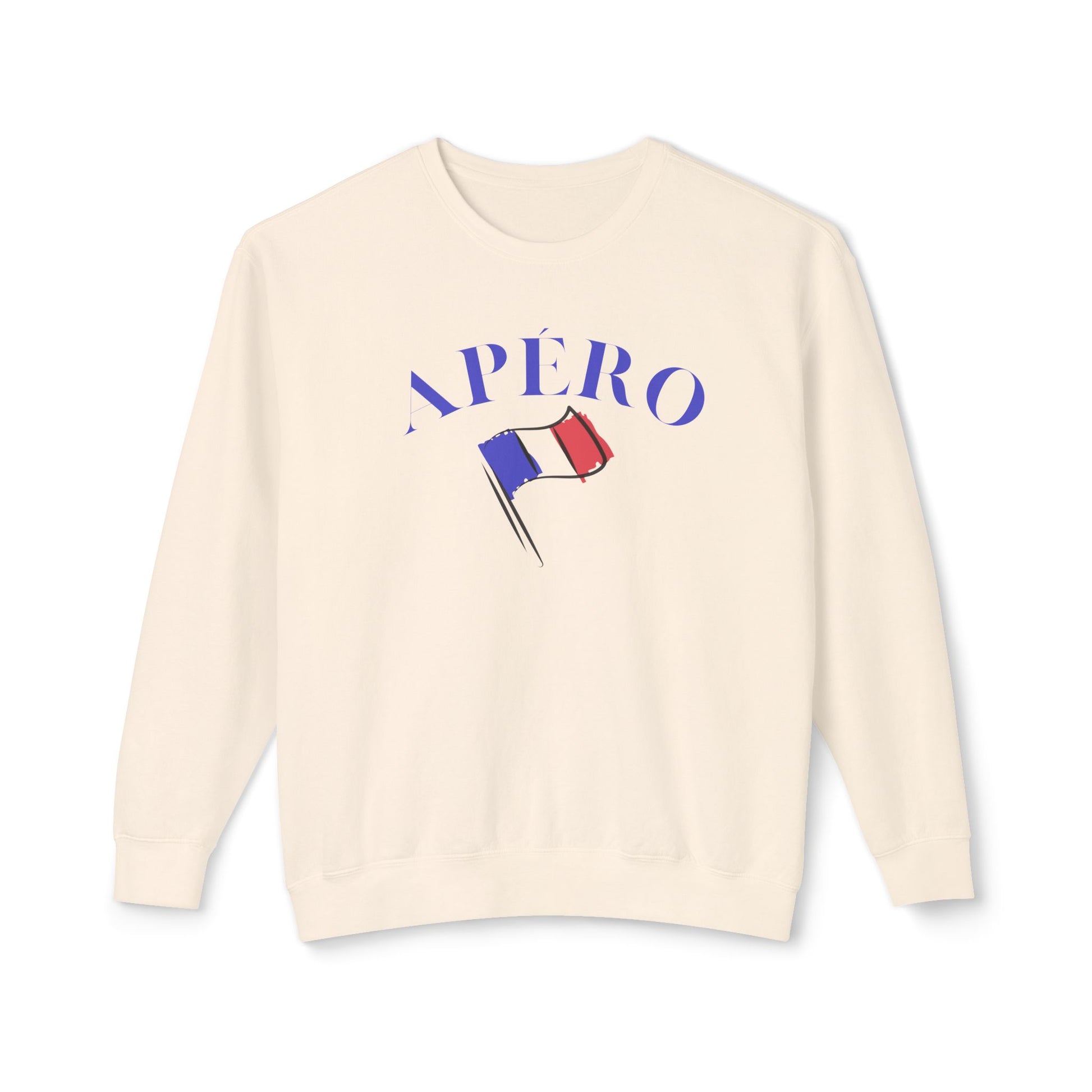 Lightweight and quietly chic, this crewneck brings a touch of Parisian leisure to everyday wear. The soft, breathable cotton drapes easy — think late-afternoon terraces and casual conversations over an apéritif. A small, hand-drawn French flag and airy serif lettering sit low on the chest, adding vintage postcard charm without shouting. It layers smoothly over a tee or under a coat, moving from relaxed strolls through neighborhood markets to low-key gatherings with friends. For someone who values subtle style and easy comfort, this sweatshirt feels like a familiar café seat: relaxed, stylish, and just a little wistful.