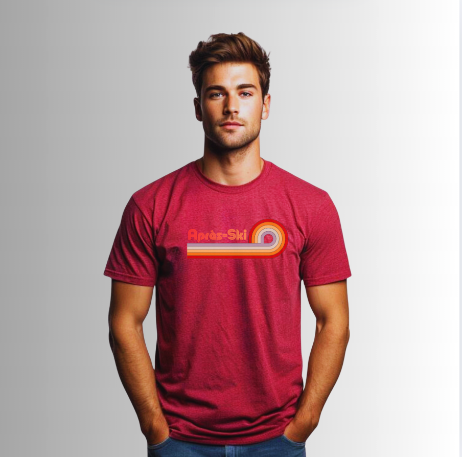 Channel cozy lodge nights and sunlit runs with this lightweight, uber-soft cotton blend tee stamped with retro ‘Après-Ski’ graphics. The stacked, rainbow-inspired loops in warm browns, greens and icy blues feel like layered trail maps — playful, nostalgic, and quietly adventurous. It sits neat at the crewneck and holds its shape thanks to side seams and shoulder tape, so it moves with you from slope to bar without losing its clean silhouette. Wear it after a long day on powdered runs, at an alpine lodge, or folded into your weekend pack for spontaneous road trips. Breathable and soft, it layers easily under jackets or over base layers, translating mountain memories into everyday wear. Product features - 100% Airlume combed and ring-spun cotton (lightweight 4.2 oz) — breathable and soft - Ribbed knit crewneck with seam and tear-away label for comfort - Side seams and shoulder tape for shape retention and stability - Durable sleeve and neck prints using DTF/DTG for crisp, vibrant graphics - REACH certified; Bella+Canvas responsibly manufactured (Fair Labor Association & WRAP certified) Care instructions - Machine wash: cold (max 30C or 90F) - Non-chlorine: bleach as needed - Tumble dry: low heat - Iron, steam or dry: medium heat - Do not dryclean