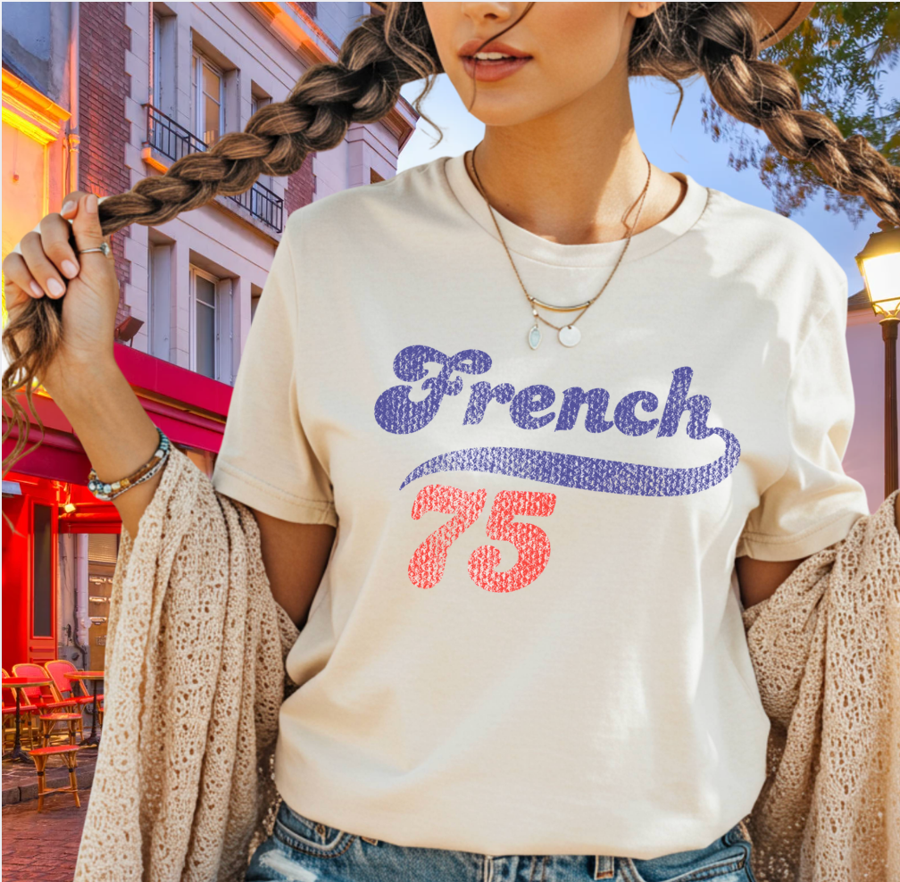 French 75 Retro Script T-Shirt | Vintage Cocktail Style