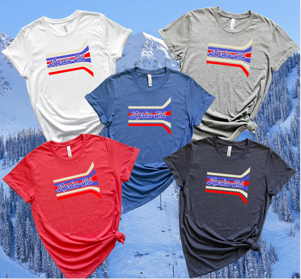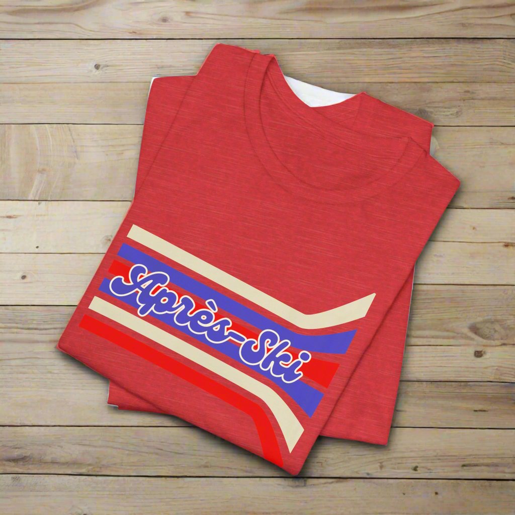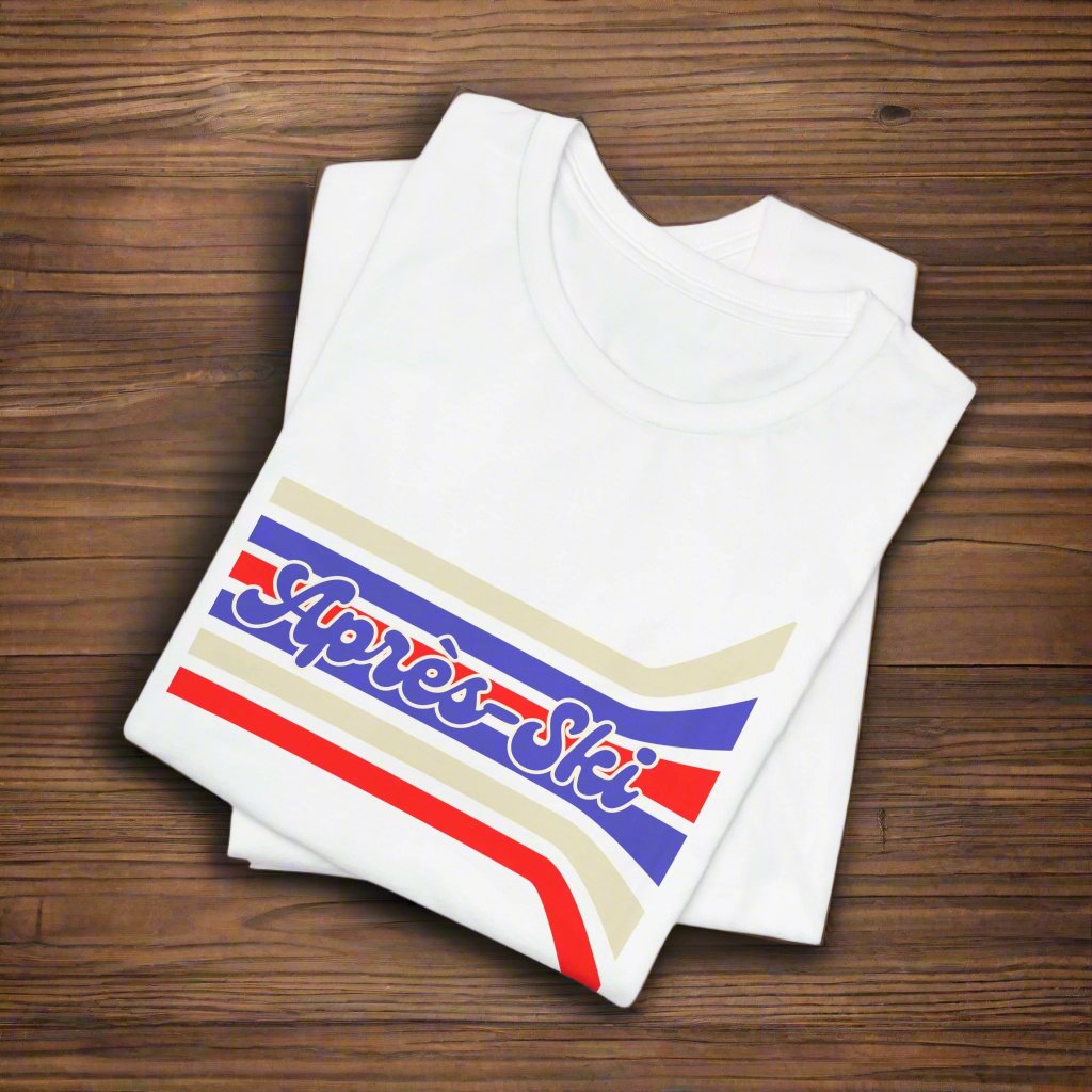 Après-Ski Unisex Tee- Retro Stripes in Ivory, Red & Blue
