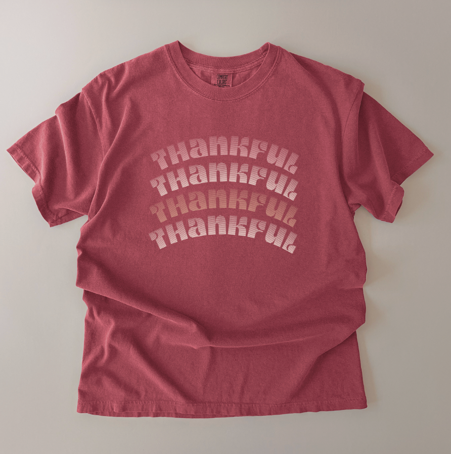 Feeling Thankful? This gorgeously soft cotton tee will put your feelings on display. Great for Thanksgiving, and can continue to be worn all year.