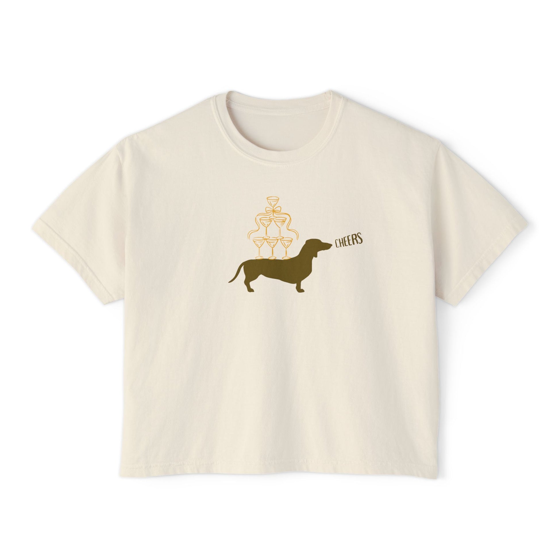 Darling Dachshund & Champagne Tee - Boxy Cropped Style